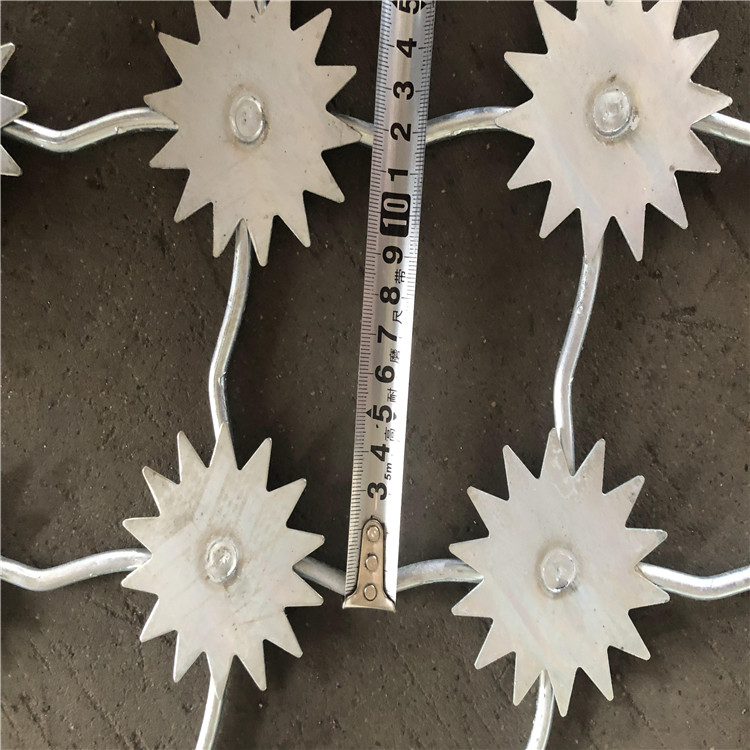 寸: 120mm*110mm(高*寬) ,網(wǎng)絲直徑8mm ,采用S195線(xiàn)材高壓焊接,每一個(gè)焊點(diǎn)附焊梅花刺-一個(gè)。