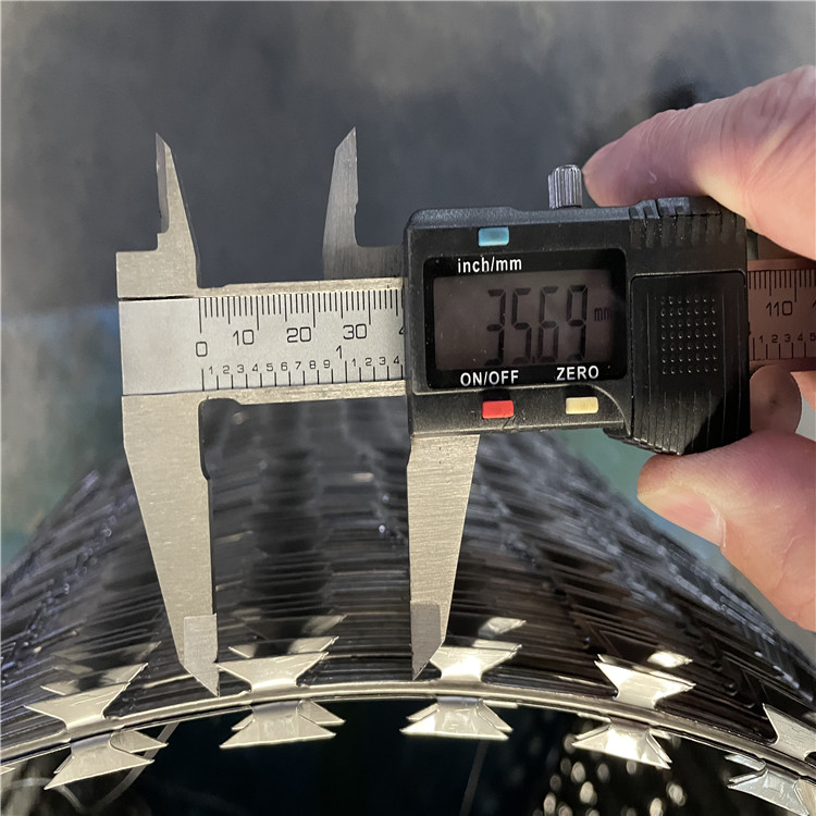 監(jiān)獄刀片刺繩是用在監(jiān)獄護(hù)欄網(wǎng)頂端的刀片刺繩,它是一種近年發(fā)展起來的防護(hù)、隔離能力較強(qiáng)的新型防護(hù)網(wǎng)產(chǎn)品。它采用鋼板沖壓成型包附于鋼絲之上,由銳利尖角鍍鋅鋼板或不銹鋼薄板做刀片,高張力鋼絲做芯線組合而成的。根據(jù)形狀可分為:螺旋式-刀片刺網(wǎng)、交叉式-刀刺網(wǎng)、平板式-刀片刺網(wǎng)、直線式-刀片刺網(wǎng)。被廣泛應(yīng)用在監(jiān)獄,機(jī)場,軍事基地等高安全場所。
