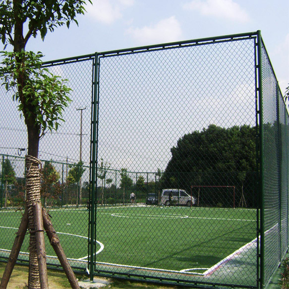 球場圍網(wǎng)統(tǒng)稱叫勾花護欄網(wǎng),一般多用在球場、體育場、運動場等體育設施場地,像公園圍欄網(wǎng)選擇這種就比較少,這種圍網(wǎng)由勾花網(wǎng)片、邊框、立柱三部分級成,勾花網(wǎng)片的材質(zhì)分為包塑鋼絲,不銹鋼絲和純鋼絲三種,在市面上比較流行包塑鋼絲和純鋼絲這兩種,而體育設施場地多為包塑鋼絲。